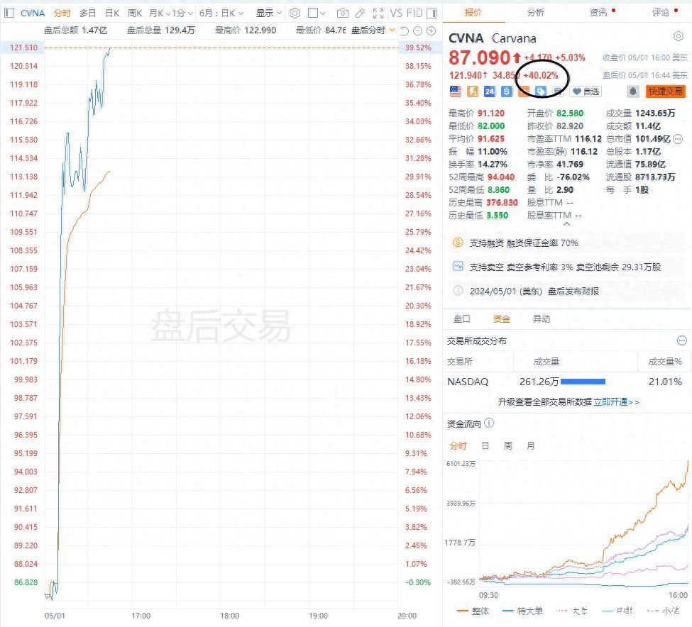 【CVNA美股盘后上涨超40%】财联社5月2日电优微贷优微贷,二手车零售平台Carvana(CVNA)美股盘后上涨超40%,该公司第一季度扭亏实现盈利,创历史同期新高。