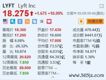 格隆汇5月8日|美国网约车巨头Lyft(LYFT.US)涨超10%,报18.275美元。Lyft第一季度营收为12.77亿美元,同比增长超27%,市场预期为11.7亿美元;调整后每股收益0.15美元,超出市场预期的0.08美元。该公司一季度录得1.88亿次乘车次数,同比增长23%;总预订量同比增长21%,达37亿美元;活跃乘客数同比增长12%,达到2190万。Lyft预计第二季度的总预订量约为40亿至41亿美元,高于市场预期的39.8亿美元。