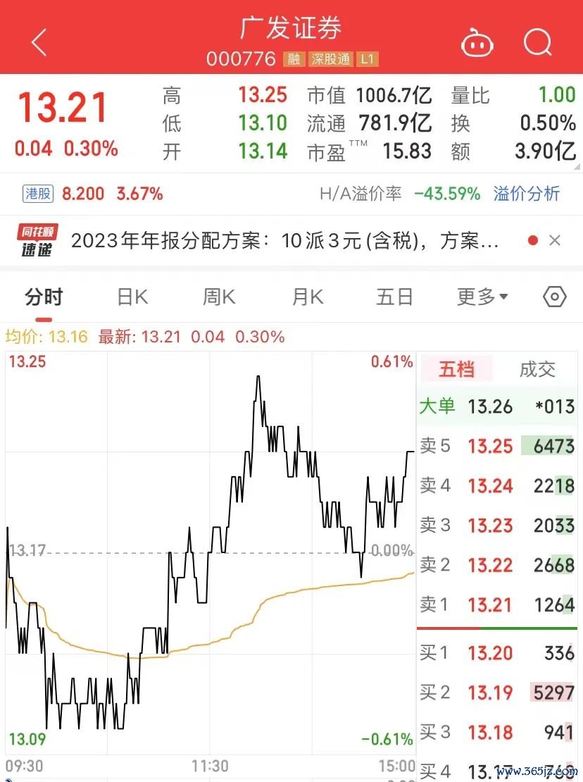 5月10日,广发证券A股涨0.3%,收报13.21元,公司总市值为1006.7亿元。