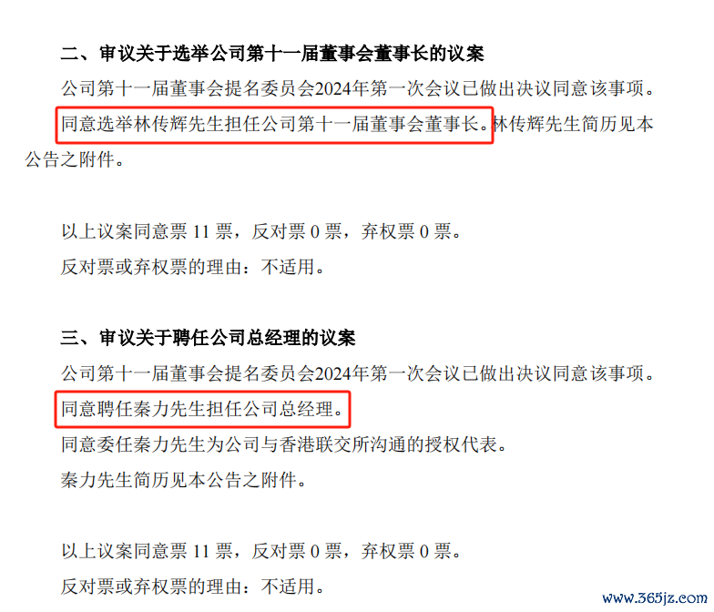 林传辉担任董事长不再兼任总经理
